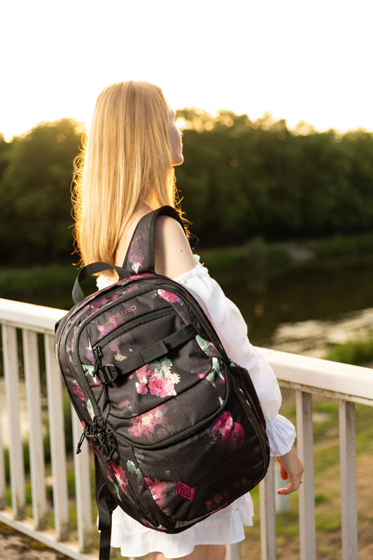 Nitro Future Hero 35 Liter Rucksack BLACK ROSE (Blumen) Daypack mit 17 Zoll Laptopfach