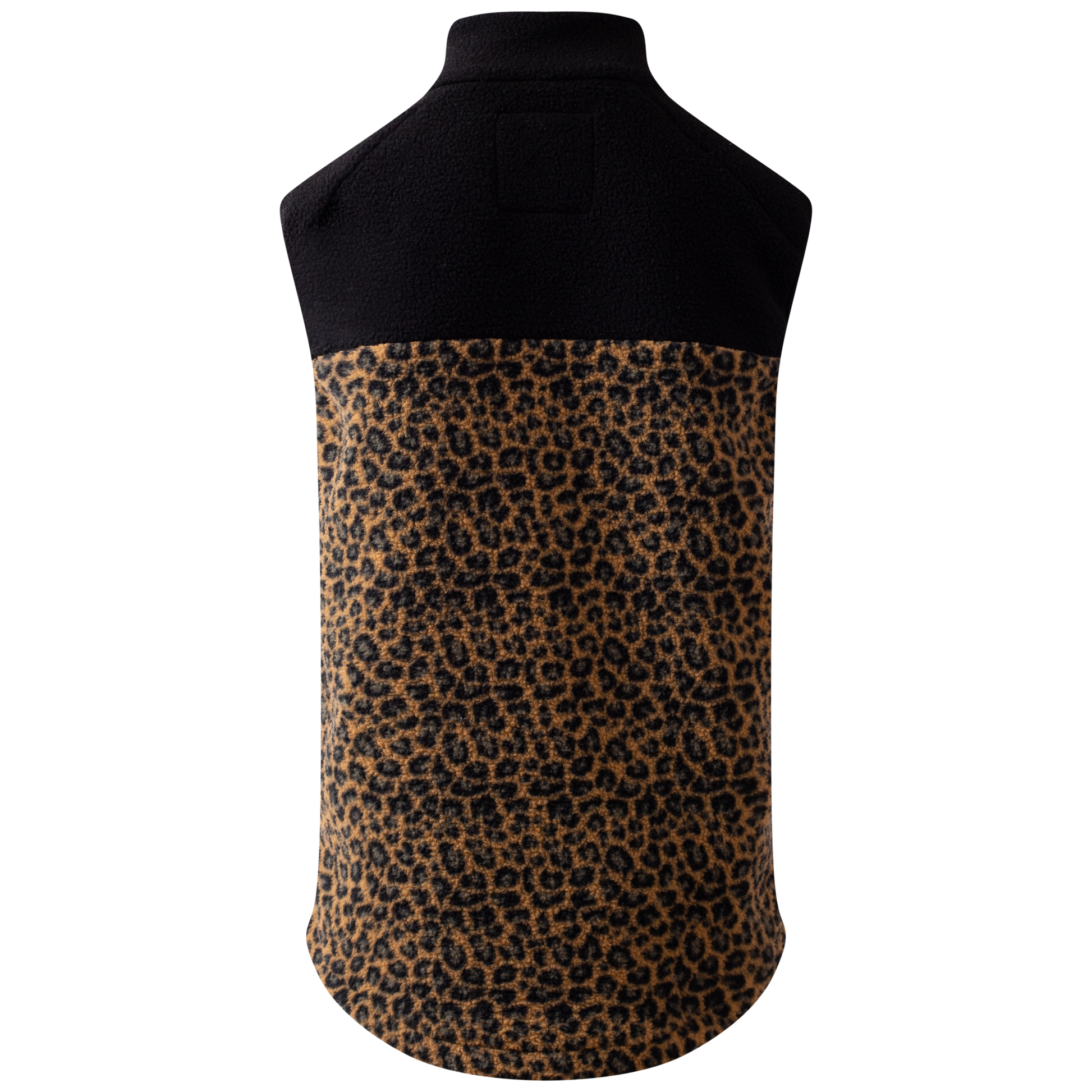 Das dicke, weiche Sherpa-Fleece mit trendigem Leopardenmuster sorgt für angenehme Wärme und Komfort, während der hohe, doppellagige Kragen optimalen Schutz vor Wind und Kälte bietet. Die abgeschrägten Schultern und die gerade geschnittene Taille verleihen der Weste eine moderne, schmeichelhafte Silhouette.