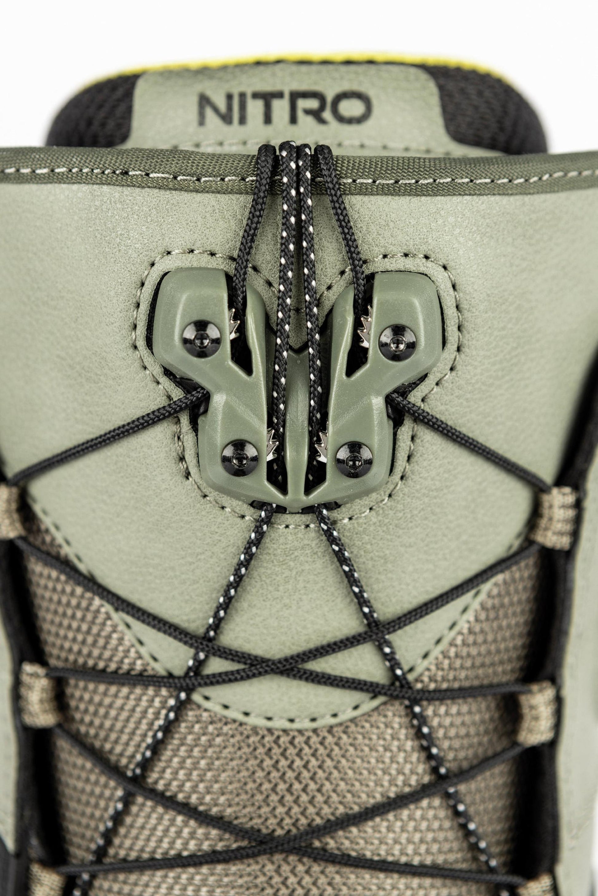Das bewährte Nitro TLS-Schnürsystem ermöglicht eine schnelle, zonale Anpassung mit sicherem Sitz über den gesamten Fuß. Einfaches Nachjustieren, stabiler Halt und gleichmäßige Druckverteilung – den ganzen Tag.